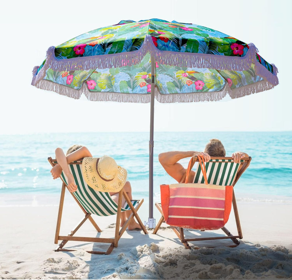AMMSUN 6.5ft fringe Beach Umbrella,Blossom