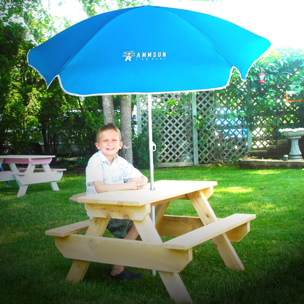 AMMSUN 5ft Kid Umbrella for childrens picnic table, Sky Blue - AMMSUN Beach Umbrella with sae umbrella beads for children