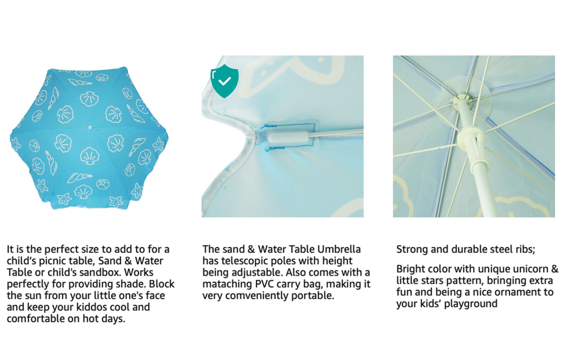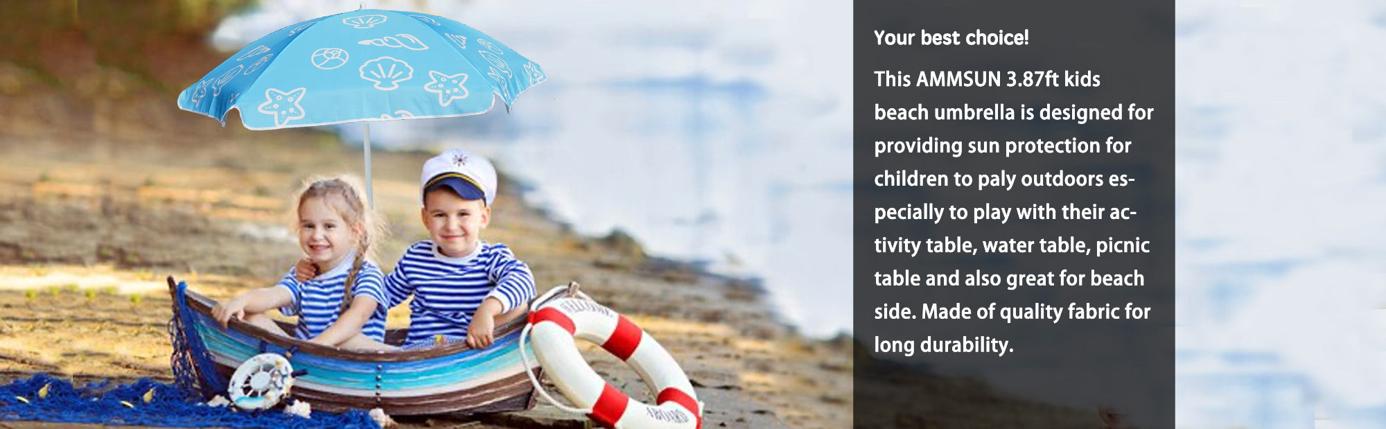 The AMMSUN 47in Seaside Umbrella provides youngsters with shade while .they play with their activity table, picnic table or while hanging out at the beach. Designed to hold a 47” (120 cm) umbrella that nests nicely on the side of the pool providing shade for your little.