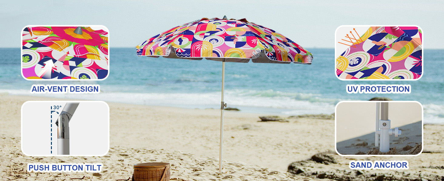 AMMSUN 7ft Beach Umbrella With Sand Anchor, Mirage