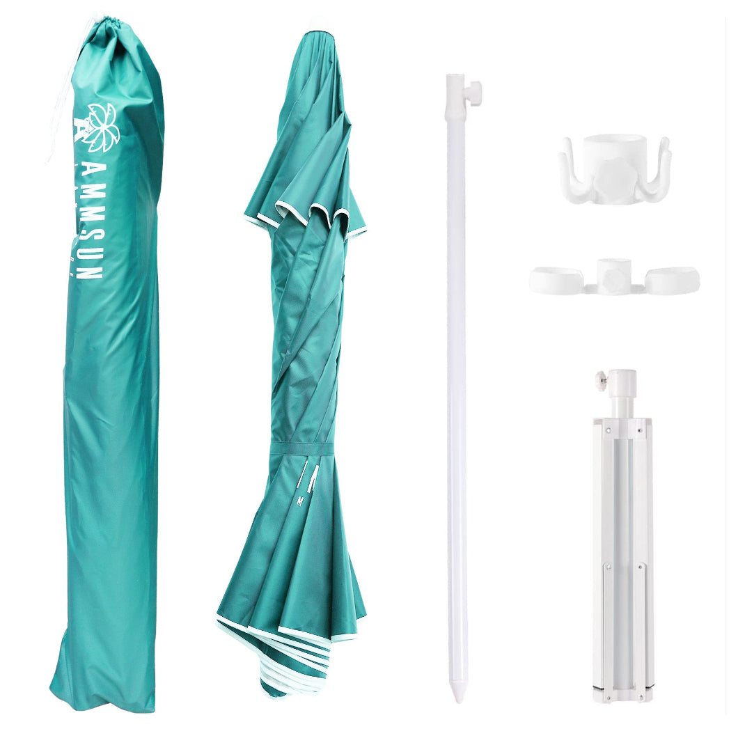 AMMSUN 6.5ft turquoise portable beach umbrellas for sand with satnd, with height adjustment, from 5ft to 7ft high