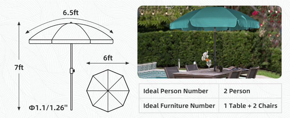 AMMSUN 6.5 Feet Small Patio Umbrella with tilt function is the perfect answer for a bright and sunny day!