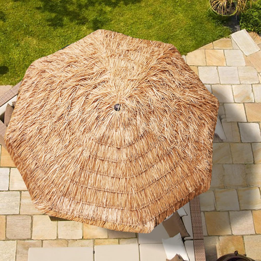 Sturdy And Durable Frame- 9ft diameter canopy thatched tiki umbrella Hawaiian Style straw umbrella with Heavy duty rustproof steel poles and 8 steel ribs provide enhanced durability and which provides enhanced stability and extended protection even in windy conditions.