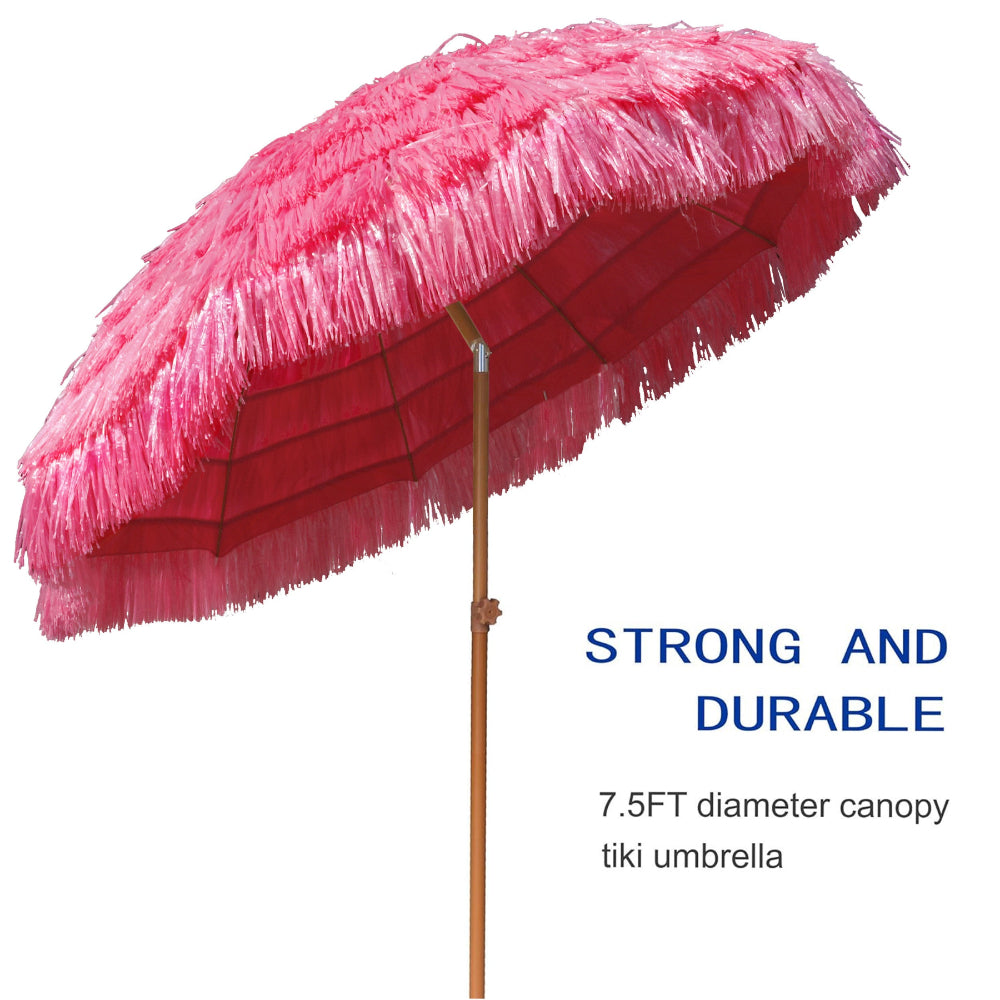 AMMSUN pink 7.5ft Hula Thatched Tiki patio beach umbrella for sand has the stong and durable frame