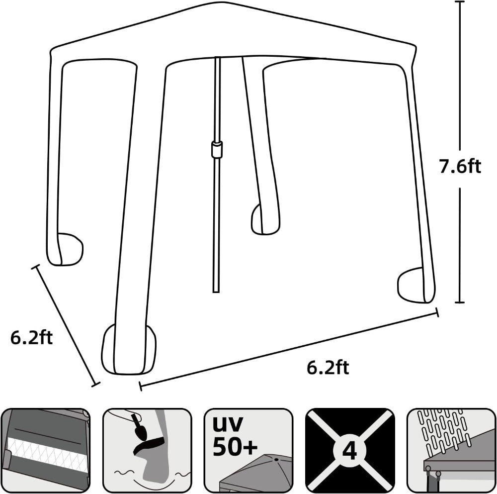 PROVIDE ENOUGH SHADE: 1.26/1.38" steel pole with height adjustment options. Each one measures 6.2' × 6.2', so it will provide plenty of shade for you to cool off, ideal for family or couples.