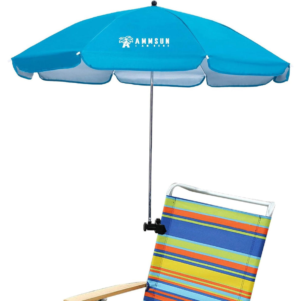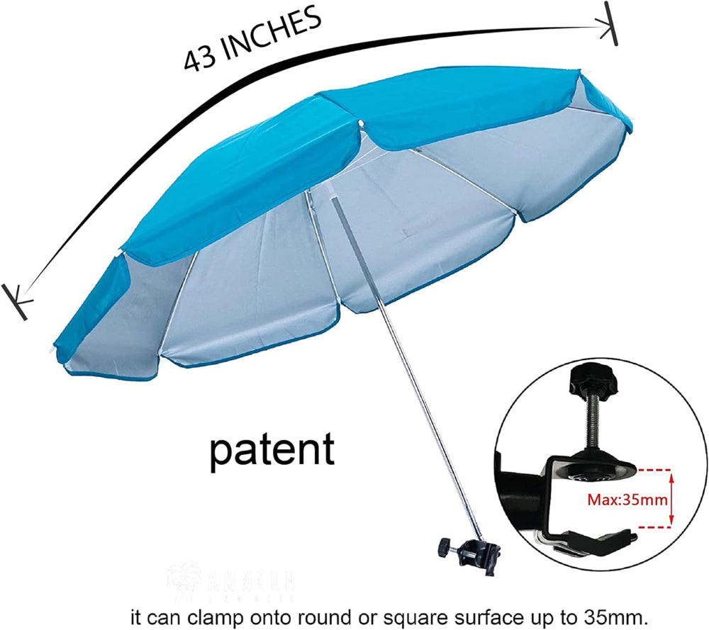 AMMSUN Chair Umbrella with Universal Clamp 43 inches UPF 50+ on Patio Chair, Beach Chair, Stroller, Sport chair, Wheelchair and Wagon, Bright Blue