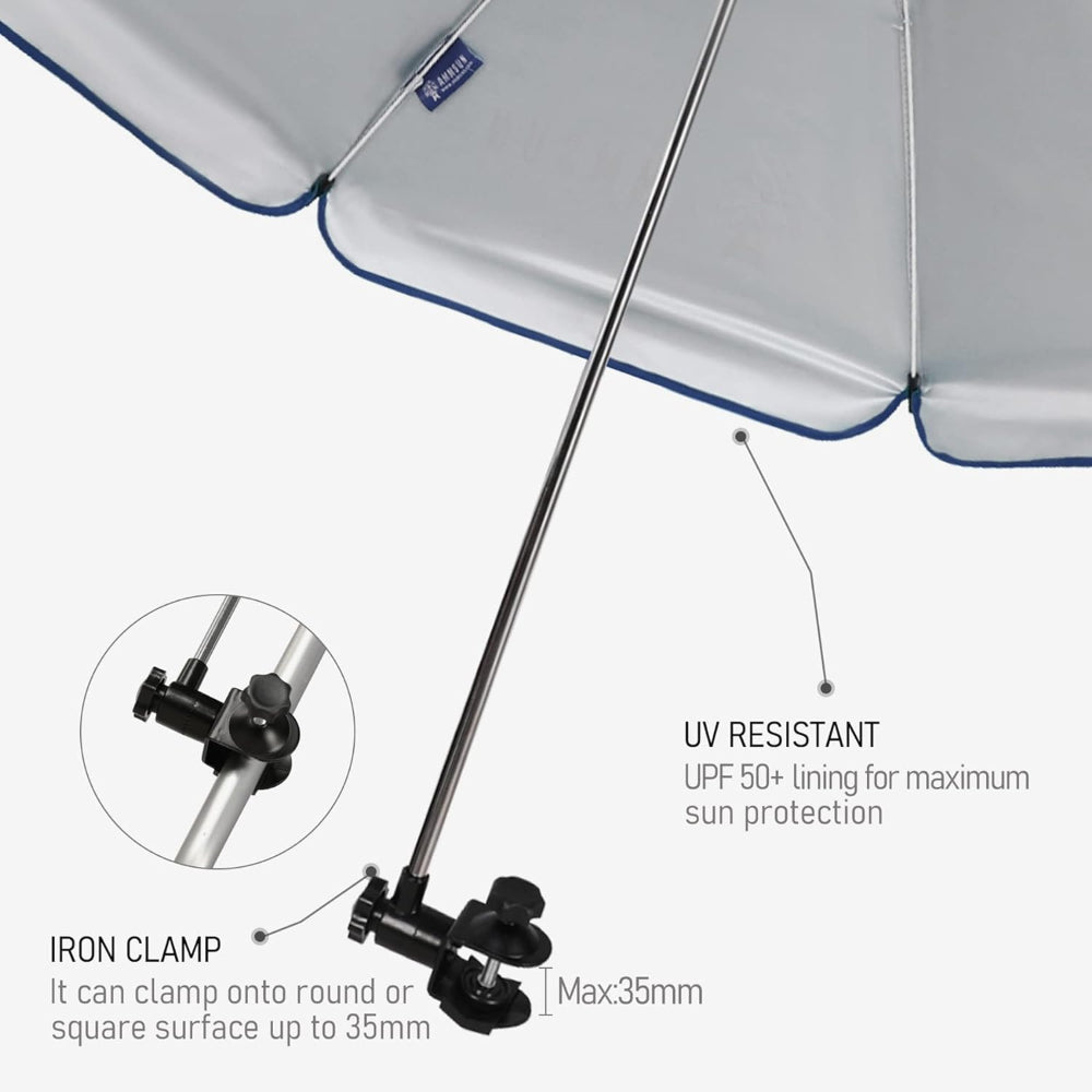 Navy Blue AMMSUN 43 inches uv umbrella for chair with iron Clamp on surface up to 35mm