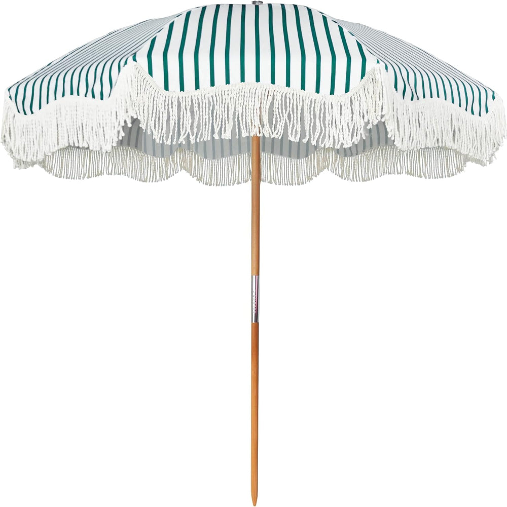 AMMSUN 6.5ft ash wood pole Boho Umbrella with Fringe,Green Plaid