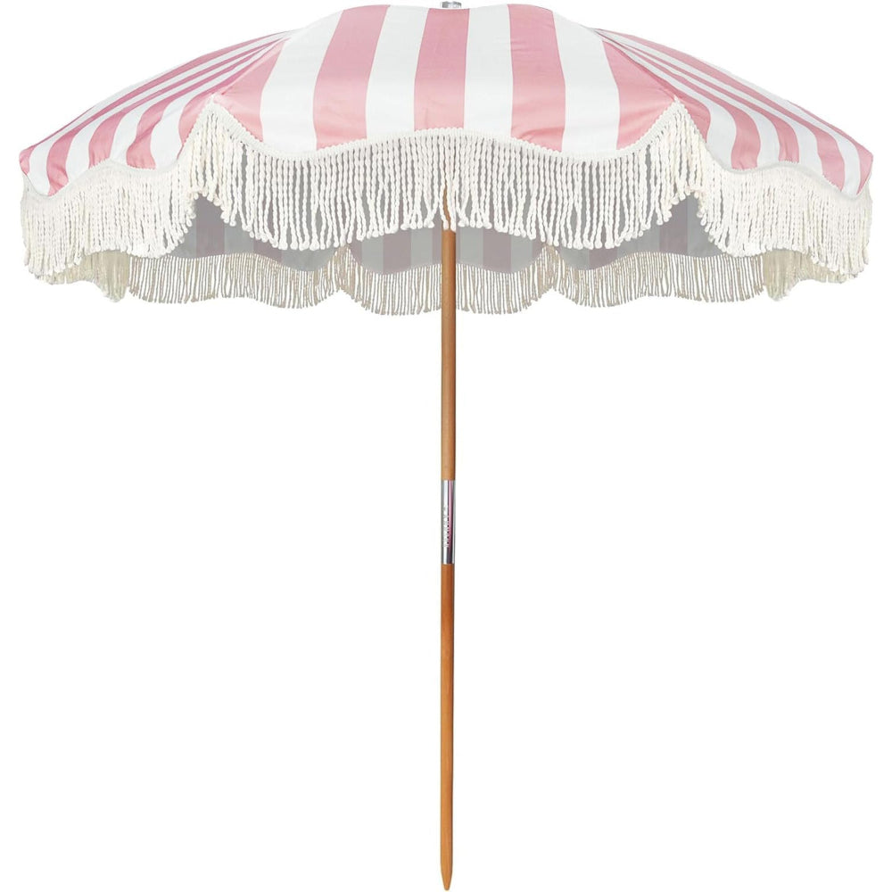 AMMSUN 6.5ft ash wood pole Boho Umbrella with Fringe,Gentle Pink