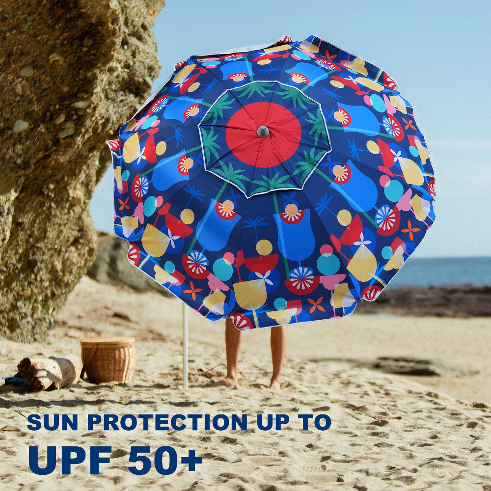 AMMSUN 7ft Beach Umbrella With Sand Anchor, Tropics