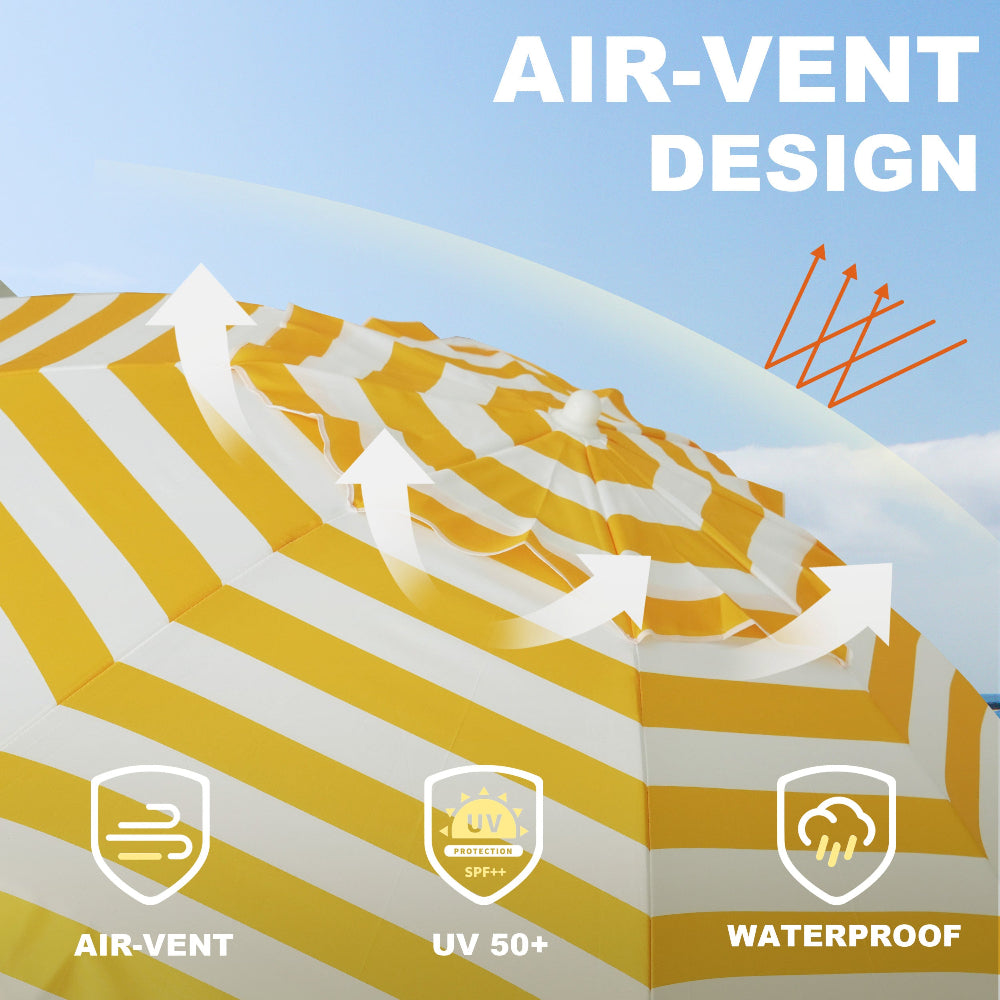 AMMSUN 6.5ft multicolor Yellow best beach umbrella heavy duty with uv 50+ and waterproof, air-vent for high wind