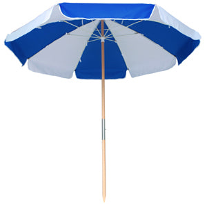AMMSUN 7.5 ft Commercial Grade Beach is multi-purpose designed for beach, patio or backyard. Its vented top allows heat to rise and dissipate for cool shade under the umbrella and stability in windy conditions. The attractive polyester fabric with special anti-uv treatment offers UPF50 UV protectionand an ash wood pole offering lasting longevity and incredible sturdiness. Thick fiberglass ribs will not bend in windy condition.It stands over 7.8 feet tall, so there's plenty of room underneath for the whole family. For Patio Use: Recommend a 40 lb. stand for through-table use. Optional Integrated Sand Anchor device (sold separately as option ) is recommended. It's built to hold your umbrellas pole firmly in the sand for maximum stability. It screws into the sand or turf and makes your umbrella much more secure.Wood Beach Umbrella is a snap to set up. It has a simple push up action that works just like a standard umbrella. It even comes with a handy carrying bag. Fun in the sun never felt so cool and comfortable.