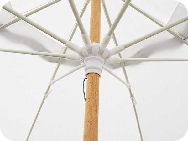 High quality design of the wood pole and sturdy fiberglass frame and all deluxe compositions make this beach umbrella quite strong and elegant. Wood pole is strong and high quality.