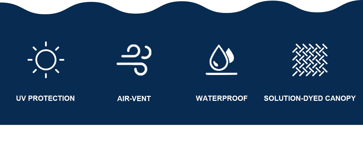 Featuring a 8ft wide canopy, it provides shade for a family of four at the beach, by the pool or on the patio.