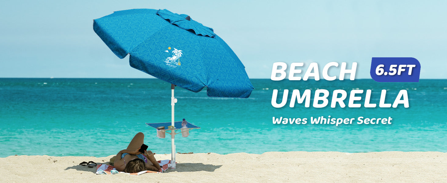 EASY TO SET UP & Built-in Table: Reinforced Sand Anchor that can help you twist your beach umbrella into the sand or dirt more easily and stronger. Built-in Table Tray,press directly down and pull up for opening and closing.Providing a surface for placing items like drinks, sunglasses, or small belongings.