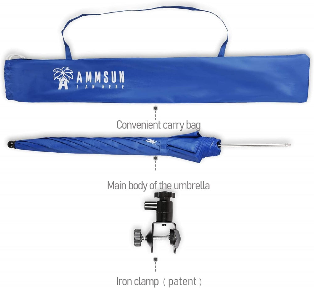 AMMSUN chair umbrella with universal clamp 43 inches, portable clamp umbrella, Blue
