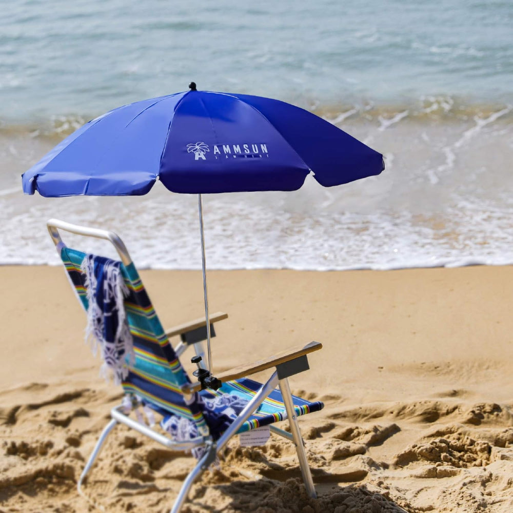 AMMSUN 43 inches Chair Umbrella with Universal Clamp and uv resistant, Blue beach umbrella for beach chair with umbrella